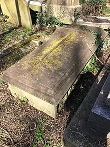 Thomas Dale died on 14 May 1870[9] and is buried on the western side of Highgate Cemetery,[10] close to the grave of Catherine Dickens, which may not be coincidental given the Dickens' connection with Rochester. There is an inscription on the grave in remembrance of his wife Emily Jane, though she is buried in the vaults of St Pancras Church. Dale, being convinced of the danger of interment in crowded centres, had put aside his strong desire to be placed beside her in death and given the weight of his influence to the sealing up of the vaults of the Church. It was said that from Dean Dale's grave in Highgate Cemetery, may be seen many of the churches he caused to be built.[11]
