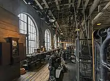 The laboratory complex comprises the industrial facility built by Edison in 1887 to research and develop his inventions. The complex includes more than a dozen buildings that supported Edison's research into electricity, photography, motion pictures, chemistry, metallurgy, chemistry and other disciplines. A private library was attached to the main laboratory building. Specialty heavy and precision machine shops made tooling and prototypes.[4] Edison's Black Maria was the world's first movie studio, and the building could be rotated on a turntable to keep sunlight on film subjects. It was reconstructed in 1954.[5]