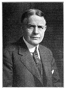 When Thomas resigned in 1917,[28] he was appointed as the Chairman of the Munitions Board of the War and Navy Departments for the rest of World War I.[29][30] This board encouraged the munitions and aircraft industries to pool their patents to help the technological development for the war effort.[19] When the war was over, Ewing returned to Yonkers and resumed his law practice. But he continued to lecture on patent law at Georgetown University. He had begun in 1914[31] and he would continue until 1932.[30][32] He later served as the President of the American Group of the International Association for the Protection of Industrial Property,[29] of the New York Intellectual Property Law Association from 1928 to 1929,[33] and of the American Patent Law Association in 1931.[29]