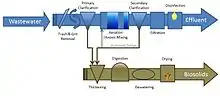 Continual monitoring serves to protect the delicate microbial ecosystems in the treatment process. The microbes drive the aerobic decomposition and anaerobic digestion of the raw sewage to eventually form a safe effluent that can be dispersed back into the environment. The byproducts of this process are eventually separated into liquids and solid matter, known as effluent and biosolids, respectively. The influent, effluent, biosolids and other parts of the process are constantly monitored by the Water Quality Lab for a variety of chemical parameters to ensure the facility meets both state and federal regulations.[3]