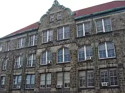 Thomas Powers School is a historic school building located in the Port Richmond neighborhood of Philadelphia, Pennsylvania. It was built in 1899–1900, and is a three-story, square, granite building with basement in the Romanesque style. It sits on a stone foundation and features a projecting round arched tower, stepped Flemish gable, and hipped roof with large projecting chimneys.[2]
