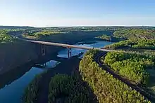 Minnesota Department of Transportation (MnDOT) relocated the main route to Virginia from southern cities including Duluth, Eveleth, Gilbert and Minneapolis. This project happened because the Rouchleau Mine Pit had Iron Ore under were the old U.S. 53 was.[4] This was one of the biggest projects in 20 years in the Iron Range due to the height of the bridge. The bridge leads to Virginia, International Fall's and Canada, International Falls and Canada are about 100 miles (160 km) north but the US 53 Bridge is a main route to I'Fall's and Canada.