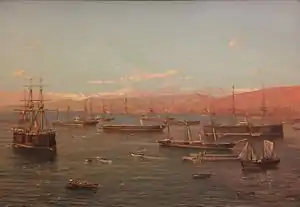 Thomas Jacques Somerscales (born in Sculcoates, Yorkshire on 29 October 1842; died in Sculcoates, Yorkshire on 27 June 1927) was an English teacher, sailor, and landscape and marine painter. He is also considered a Chilean painter as he began his career as an artist there. Many of his landscapes evoke the region and many of his marine paintings feature notable events in Chilean naval history and have become patriotic national icons in that country.
