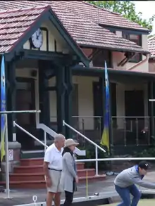 Having become a resident of Mosman Tidswell started doing work for the Mosman Recreation Club, known as the Mosman Recreation Company. He designed a pavilion in 1901[21] which was replaced by a larger pavilion in 1916 to a design by Tidswell. As the honorary company architect he designed a six-rink bowling green, turf and asphalt tennis courts.[22] Lawn bowls commenced with the completion of the greens in 1902 when the club was officially opened. Membership was exclusively for men and the Mosman Women’s Bowling Club was nearby and titled Mosman Park. Now known as Mosman Bowling Club the 1916 pavilion still stands at 15 Belmont Road, Mosman.[23] It is now owned my Mosman Municipal Council.