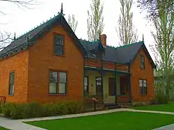 The house, which was built around 1860, is located at 120 North Main Street (SR-13). It is a one-and-a-half-story house, whose original, center section was started as an adobe house and later painted to appear as a brick house. Two cross-wings were added around 1880.[2]