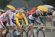 Thor Hushovd (born 18 January 1978) is a Norwegian former professional road bicycle racer.[1] He is known for sprinting and time trialing; Hushovd is a three-time Norwegian national road race champion (2004, 2010, 2013),[2] and was the winner of the 2010 World Road Race Championships. He was the first Norwegian to lead the Tour de France, and first Scandinavian to win the road race in cycling world road championship. He is also the Scandinavian with the most stage wins in Grand Tours. He is widely considered the greatest Norwegian cyclist of all time. He retired in September 2014.[3]
