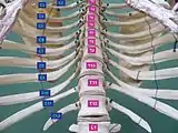 It consists of the ribs and sternum. The ribs of the thorax are numbered in ascending order from 1-12. 11 & 12 are known as floating ribs because they have no anterior attachment point in particular the cartilage attached to the sternum, as 1-7 are, and therefore are termed "floating". Whereas ribs 8-10 are termed false ribs as their costal cartilage articulates with the costal cartilage of the rib above. The thorax bones also have the main function of protecting the heart, lungs and major blood vessels in the thorax area, such as the aorta.