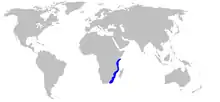 | Range of the thorny lanternshark (in blue) | |