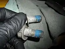 Bolts with thread-locking fluid applied