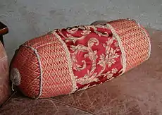 A throw pillow, or toss pillow, is a small, decorative soft furnishing item[1] made from a wide range of textiles including cotton, linen, silk, leather, microfibre, suede, chenille, and velvet. Throw pillows are a commonly used piece in interior design and come in a wide variety of shapes, sizes and decorative elements such as tassels and piped edges. The most common throw pillow designs are square and range from 16 inches to 24 inches. In the UK, a throw pillow is more commonly referred to as a scatter cushion.[2]