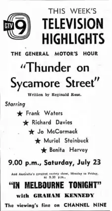 "Thunder on Sycamore Street" is a 1960 Australian television play directed by David Cahill. It was based on a script by Reginald Rose.