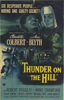 Thunder on the Hill is a 1951 American crime film directed by Douglas Sirk and starring Claudette Colbert and Ann Blyth. The picture was made by Universal-International Pictures and produced by Michael Kraike from a screenplay by Oscar Saul and Andrew Solt, based on the play Bonaventure by Charlotte Hastings. The music score was by Hans J. Salter and the cinematography by William H. Daniels.