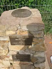 Eric Carson (1913–99), a Gloucester sawmiller and road builder, carved the first road through the ranges to bring out the magnificent hardwood from the forests on the Great Divide. After Carson spent many years trying to persuade local politicians that a road should be built across the Divide from Gloucester to Nowendoc, he went ahead and built it. Carving the 32 km (20 mi) route out of some of the steepest and most rugged countryside in the state was fraught with danger, but by 1961 it was complete.[4] Carson's Lookout, which commemorates his work is between Gloucester and Nowendoc, is a stop off point for the enjoyment of panoramic views.