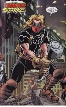 | Abilities | (MC2) Superhuman strength and durability Great leaping Sonic blasts Ability to shatter objects by touching them (Earth-616) Superhuman strength, speed, agility, durability, reflexes and endurance Via Thunderstrike: Flight Dimensional travel |
