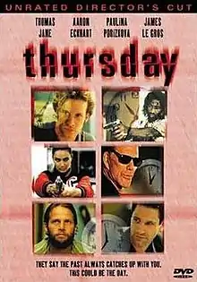 Thursday is a 1998 American crime/thriller/black comedy film written and directed by Skip Woods and starring Thomas Jane, Aaron Eckhart, Paula Marshall, Michael Jeter and Mickey Rourke. It won the Special Jury Prize at the Cognac Festival.