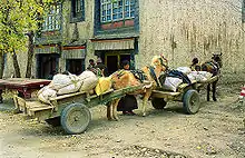 Tibetan cheeses, yogurt and butter are staples. Varieties include soft cheese curds resembling cottage cheese made from buttermilk called chura loenpa (or ser).[17] Hard cheese is called chura kampo. Extra hard cheese, made from solidified yogurt, is called chhurpi, and is also found in Sikkim and Nepal.[18] Another type of cheese called shosha or churul, with a flavor said to resemble Limburger is also eaten. It is made from cream and the skin of milk.[17]