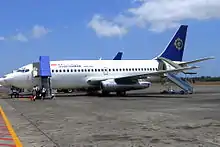 - On October 3, 2006, a Boeing 737-200 arriving from Balikpapan skidded 50 meters off the runway during landing at Tarakan. There were no injuries. Visibility was below 400 meters at the time due to heavy haze.[42] Months later, on December 18, another Boeing 737-200 skidded off the runway at Malang due to adverse weather. No injuries were reported to the 77 passengers on board.[43] Malang was the scene for another incident on November 1, 2007, when another Boeing 737-200 skidded when landing due to adverse weather. No serious injury occurred, but 5 persons were slightly injured out of 89 passengers and crew members.[44]
