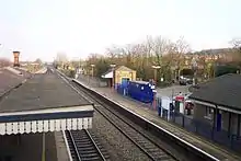 Tilehurst railway station is in the suburb and former village of Tilehurst, west of Reading, Berkshire, England. The station is on the extreme northern edge of Tilehurst, and at a much lower level than most of that suburb. The railway line and station occupy a strip of land between the A329 road and the River Thames, with the up relief platform on an embankment above the river bank.