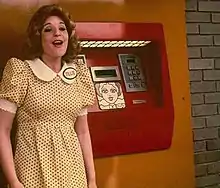It was introduced by the First National Bank of Atlanta on May 15, 1974. It started out at only eleven locations.[4] They were in commerce starting May 20, 1974.[5] Starting 1977, other banks purchased rights to use Tillie the All-Time Teller as their ATM system. By March 21, 1981, they were available at 70 locations,[6] including on a college campus.[7] On October 15, 2013, Susan Bennett revealed that she played the voice for Tillie the All-Time Teller, noting that she "started [her] life as a machine quite young."[8]