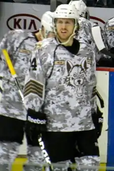![]() Miller playing for the Chicago Wolves during a military appreciation night in 2013 | |||