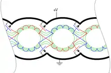 The first direct predecessor of a TDC was invented in the year 1942 by Bruno Rossi for the measurement of muon lifetimes.[16] It was designed as a time-to-amplitude-converter, constantly charging a capacitor during the measured time interval. The corresponding voltage is directly proportional to the time interval under examination.