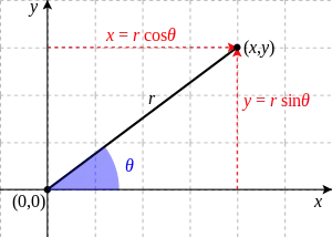 For example, consider a particle moving in a circular path. Its position is given by the displacement vector , related to the angle, θ, and radial distance, r, as defined in the figure: