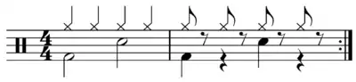In music a time point or timepoint (point in time) is "an instant, analogous to a geometrical point in space".[1] Because it has no duration, it literally cannot be heard,[2] but it may be used to represent "the point of initiation of a single pitch, the repetition of a pitch, or a pitch simultaneity",[3] therefore the beginning of a sound, rather than its duration. It may also designate the release of a note or the point within a note at which something changes (such as dynamic level).[4] Other terms often used in music theory and analysis are attack point[5] and starting point.[6] Milton Babbitt calls the distance from one time point, attack, or starting point to the next a time-point interval,[7] independent of the durations of the sounding notes which may be either shorter than the time-point interval (resulting in a silence before the next time point), or longer (resulting in overlapping notes). Charles Wuorinen shortens this expression to just time interval.[8] Other writers use the terms attack interval,[5] or (translating the German Einsatzabstand), interval of entry,[9] interval of entrance,[10] or starting interval.[11]