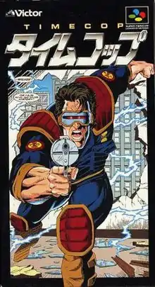 Timecop is a side-scrolling action video game produced by Cryo Interactive for the Super Nintendo Entertainment System in 1995.[1] It is based on the 1994 film of the same title and takes place after the events of the film. Despite the use of digitized actors to portray the characters in the game, Jean-Claude Van Damme was not used to pose as protagonist Max Walker. Levels range from locales in the past (e.g., New York City during the 1920s, the European front of World War II), the present day, and a dystopian Los Angeles of the distant future.[4]