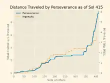 The distance traveled over time of Perseverance and Ingenuity