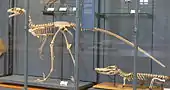 - Ostrom speculated that Deinonychus hunted in packs to subdue prey larger than itself based on an association between several Deinonychus skeletons and a specimen of the ornithopod Tenontosaurus.[9]