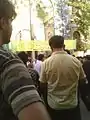 The large crowd shouted "Ya Hussein" in a YouTube footage. A YouTube footage shows that Mehdi Karroubi entered the crowd at the Ghoba Mosque.[98] One witness reported at 8:30 pm that Mohammad Khatami and Mir Hossein Mousavi are reportedly seen earlier at the Mosque. However, another witness said that Alireza Beheshti, son of Mohammad Beheshti told the crowd that Mousavi was prevented from coming. Faezeh Hashemi was seen with people that ringed around the banner outside of the Mosque door. The slogans were: "Salam bar Beheshti, Dorood bar Mousavi." Mostafa Malekian stood in the Ghoba alley with the crowd and sported victory signs.[99] Reza Attaran also joined the crowd, wearing a green T-shirt.[100] Also attending the gathering was Hojjat al-Islam Hadi Ghaffari.