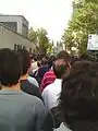 On June 15, Mousavi made his first post-election appearance, before supporters numbered at two million or more, at a rally in Tehran's Freedom Square, despite being warned by state officials that any such rally would be illegal.[30][31] Shots were fired from a compound used by Basij pro-government militia, apparently killing seven demonstrators, after the crowd allegedly attacked the militia's compound.[32][33] Iranian authorities arrested one man over the shooting. Besides this incident, the protest appeared peaceful.[34] Several rallies of smaller scale took place in other Iranian cities.[35]