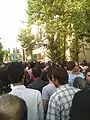 Candle-bearing protesters massed in central Tehran on Thursday near Toopkhaneh square, following a call by Mousavi to commemorate those who were killed on Monday's protests.[44] Varying reports placed the crowd size between "tens of thousands"[45] and "more than 100,000."[46] A second, simultaneous protest with several hundred participants took place near the UN headquarters, while a counter rally was held by hard line students protesting former President Akbar Hashemi Rafsanjani's role in the pro-Mousavi protests.[46]