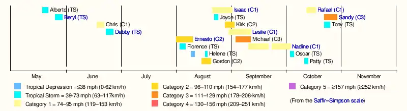 | Timeline of the 2012 Atlantic hurricane season | |||||