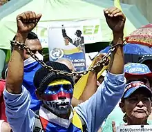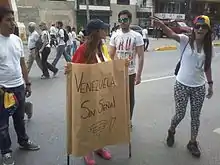 The 2014 Venezuelan protests began in February 2014 when hundreds of thousands of Venezuelans protested due to high levels of criminal violence, inflation, and chronic scarcity of basic goods because of policies created the Venezuelan government.[1][2][3][4][5] The protests have lasted for several months and events are listed below according to the month they had happened.