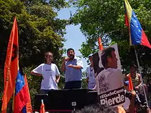 - 27 February – Students led by Juan Requesens protested against violence, detention and torture of students and the shortages in Venezuela, with Herique Capriles visiting, but not as a spokesperson.[108] The government issued an arrest warrant for Carlos Vecchio, a leader of Popular Will on various charges.[109] Medics in Maracay, Aragua state, protest against the condition of the hospitals in the state.[110] President Maduro decreed 27 February as "The Day of No Work in Venezuela" in respect for the fallen of the protests (that date was also the 25th anniversary of the historic Caracazo of 1989).[111]