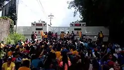 - 12 February – Student leaders called for protests on 12 February, commemorating three years of national protests called La Salida, with marches in Caracas planned to pass by the area where student Robert Redman was killed on the first day of protests.[19] Later, opposition deputies attempted to enter the CNE headquarters to present a document demanding a time frame of regional and municipal elections, with National Guardsmen responding violently towards the deputies after the politicians attempted to enter past them.[20]