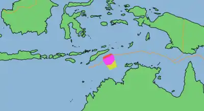 ![]() The Timor Gap The Zone of Cooperation was divided into Area A (Pink), Area B (Yellow) and Area C (Red) | |