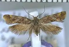 - John Stewart Dugdale (23 September 1988). "Lepidoptera - annotated catalogue, and keys to family-group taxa" (PDF). Fauna of New Zealand. Department of Scientific and Industrial Research. 14: 105. doi:10.7931/J2/FNZ.14. ISSN 0111-5383. Wikidata Q45083134. Archived from the original (PDF) on 16 July 2021.