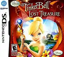 Disney Fairies: Tinker Bell and the Lost Treasure is an adventure game for the Nintendo DS. Like the previous game, the player plays as Tinker Bell in a free-roaming Pixie Hollow, using the touch screen to maneuver the character, move to other maps and play various minigames. The player must, for example, touch an arrow on the screen to move to another map or characters to speak to them. The touch screen is used in the item repair minigames as well. For example, the player must trace the pattern of a groove to clear it or rub the item to clean stains. The DS microphone is used to create wind to loosen leaves and petals or blow dust from an item being repaired. The highest rank on 'Tinker bell' is Champion of the Craft.