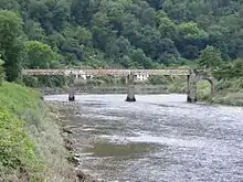 The Tintern Wireworks Branch was a short branch line on the Wye Valley Railway, crossing the River Wye between Monmouthshire, Wales, and Gloucestershire, England. It was completed in 1874 and opened on 1 November 1876; the reason for the delay was that the Wye Valley Railway, into which the branch line fed, was not completed until the latter date. It closed in 1935 when the rails buckled in the heat of the summer.[1] The bridge which carried the line over the Wye remains and is used as a footpath.[2]