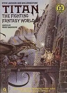 Titan: The Fighting Fantasy World is a book in the Fighting Fantasy series of children's role-playing gamebooks, first published by Puffin Books in 1986. Although credited to Steve Jackson and Ian Livingstone, it was actually written by Marc Gascoigne (credited as editor),[1] although mostly based on locations, characters and events already described in other books in the series (including Jackson's and Livingstone's). It is written in the manner of an encyclopedia about the fantasy world of Titan, in which the majority of Fighting Fantasy gamebooks are set.