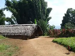 The Hill Tiwas live in the westernmost areas of "The Ancient Lalung - Tiwa Hills" now known as Umswai Valley of Amri block in West Karbi Anglong district (Assam) and as well as in the Northeastern corner of Ri-Bhoi district (Meghalaya). They speak their own Tiwa language which is a part of Tibeto-Burman language of the Bodo-Garo group. They are divided into a dozen clans recognized by specific names which they use as patronymics. Their descent system can be said to be ambilineal.[9] In most cases, the husband goes to live in her wife's family settlement (matrilocality), and their children are included in their mother's clan. However, in about 30% of unions, the woman comes to live with her husband. In such cases, children take the name of their father. This trend is on the rise under the influence of neighbouring populations which are mostly patrilineal. About one-half of Hill Tiwas follow their "traditional" religion. It is based on the worship of local deities. The other half has been converted to Christianity since the 1950s. The Hill Tiwas society is organized around seven old villages which constitute its political as well as ritual center. Each of them harbors a chief (loro) who performs judicial and religious duties for a network of settlements. Old villages are also characterized by their bachelor dormitory (shamadi).