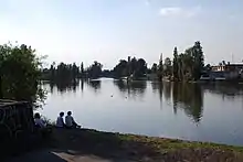 Much of the area is former shallow lake with remaining open water, wetlands and canals. Much of the surface water is saline due to the high mineral content of the soil and lack of natural outflow.[2] The Lago de los Reyes Aztecas (Lake of the Aztec Kings) is a lake that covers 1.9 hectares and connects to the large network of canals and chinampas of the borough. It hosts about twenty five species of migratory birds including ducks and storks along with various fish, amphibians and reptiles. It is the most important tourist attraction of the borough with docks and trajinera boats.[2] The main docks in Tlahuac do not have a large number of boats or restaurants as in Xochimilco. It is still possible to see small natural islands as well as natural vegetation in much of the area with chinampas still growing foodstuffs such as broccoli, chard, beets, chili peppers, peas, fava beans and corn.[6] There are four main canals: Chalco, Guadalupano, Atecuyuac and Amecameca. The first two are important as sources of water for the chinampas of the borough and as a tourist attraction. There are also other smaller canals which serve as irrigation. On the border with the State of Mexico, there is an important ecological reserve lake area called the Cieniega de Tláhuac. There is also an artificial lake at the Bosque de Tláhuac.[2] Los Humedales wetlands is an ecological reserve which covers between 400 and 800 hectares depending on whether it is the rainy or dry season, a remnant of Lake Chalco. It is one of the few wetlands left in the Valley of Mexico and host a large number of migratory birds. It is also home to species called pocket gophers, skunks, squirrels, snakes and bats.[1][2][7]