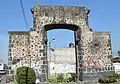 The station was opened on 30 October 2012, on the first day of the Mixcoac–Tláhuac service.[7] The facilities are accessible for the disabled.[8] The pictogram represents a stone gateway located in the town.[3] Known as La Puerta de Tlaltenco (lit. transl. Tlaltenco's Gateway), the landmark was formerly used as a customs point to control the transit of goods.[2]