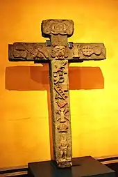 The former Franciscan monastery was built between 1537 and 1542, located on a hill on the edge of the historic center, away from the main square. It was one of the first four to be built by the Franciscans in the Americas, accredited to Martín de Valencia. The layout of the complex is unusual with the cloister on the left or north side of the church. The church still has its original roof made from large beams of wood.[5] The main nave of the church has one of the few examples of Moorish art in the Americas.[1] It has a large atrium and various chapels, with only two of the atrium chapels remaining. There is a tower located on the outside wall away from the main building.[5] The east atrium is historically important as the site of the first evangelist plays performed in Nahuatl starting in 1537. Today, this cloister area is the Regional Museum of Tlaxcala.[4] The main gateway to the monastery has the coat-of-arms of Castillas and the year 1629, mostly likely to mark the centennial of the monastery's founding.[1] The after its use as a monastery ended, the cloister was used as a military barracks, a hospital and a prison. Only some of its original murals remain. It has been the home of the Regional Museum since 1981. The museum contains five halls dedicated to the history of the state from the pre-Hispanic period to the 19th century and it has two halls for temporary exhibits. The museum also hosts conferences and cultural events. Other services include those related to research. The museum is operated by the Instituto Nacional de Antropología e Historia (INAH) .[5]