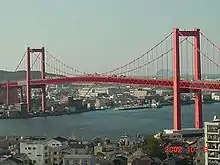 Part of Tobata ward faces the sea inlet or firth (Scottish English) called Dokai wan, and the surrounding outer sea is called Hibiki nada. The red-painted bridge between Tobata and Wakamatsu wards is called the Waka-To Ohashi (Great Bridge of Waka-To) and was the first suspension bridge in Asia, completed in 1963. On September 30, 2005 it passed into the control of Kitakyushu city.