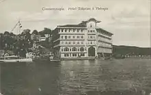 After the success of the first Tokatlıyan hotel, Meguerditch Tokatliyan opened another hotel at Tarabya in 1909.[13][14] The hotel consisted of 120 rooms and was situated on the banks of the Bosphorus.[7] The hotel became popular immediately.[7] However, on April 19, 1954, the hotel was heavily damaged due to fire.[7][13][15][16] In 1964 the hotel was reconstructed and its name changed to the Büyük Tarabya (Grand Tarabya) Hotel.[7] The hotel was used as a setting for numerous Turkish movies and TV shows such as Cici Gelin, Acele Koca Aranıyor, Arım Balım Peteğim, and more.[7]