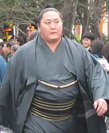 He was inspired to enter professional sumo by watching active wrestlers Asashōryū and Asasekiryū, with whom he had practised judo as a teenager in Ulaanbaatar.[4] He joined Tokitsukaze stable when in his second year of university,[5] just before reaching the upper age limit of 23 set by the Japan Sumo Association. He graduated from the Tokyo University of Agriculture in March 2004.[4]