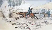 He participated in the cavalry charge during the Battle of San Juan and Chorrillos on January 13, 1881, disbanding the retreat of the Peruvian army in San Juan. He then led the main cavalry charge against Merino's Peruvian forces; Being at the head of his three squads, he headed towards the hills of Chorrillos.[5]
